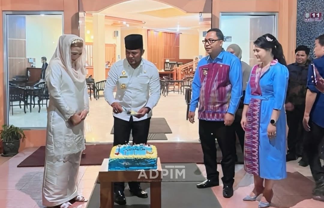 “Silahkan Pak Gubernur,” ucap sang tuan rumah, Bupati Frederick Edwin seraya mempersilahkan Gubernur Harum untuk memotong kue ulang tahunnya.