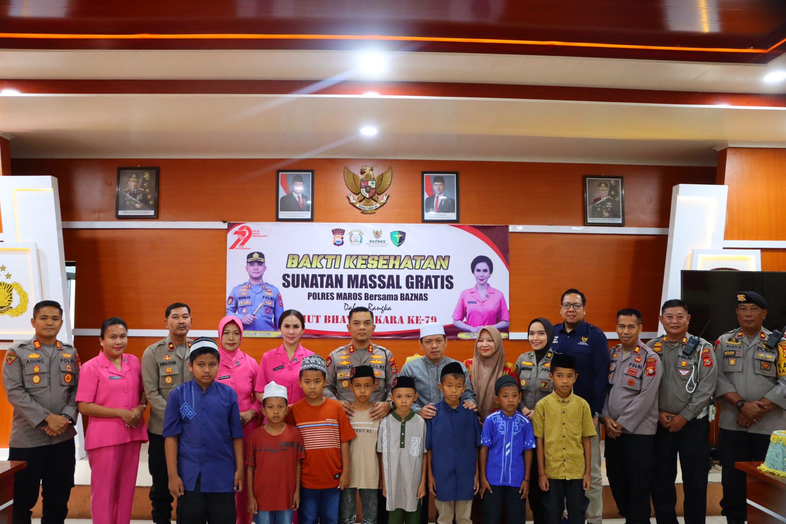 Sulsel, kpktipikor.id – Dalam rangka memperingati HUT Bhayangkara ke-79, Polres Maros menggelar kegiatan bakti kesehatan berupa sunatan massal gratis bagi anak-anak yang berasal dari keluarga kurang mampu.